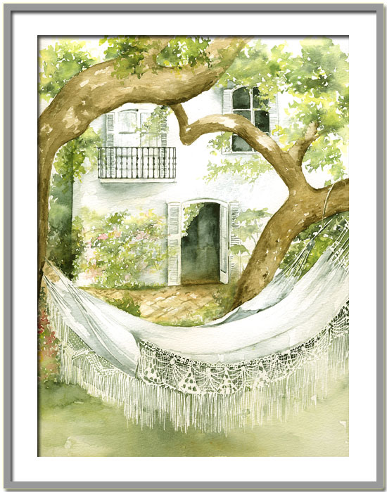 Aquarelles/Watercolours Ile Maurice / Mauritius Le hamac / The hammock