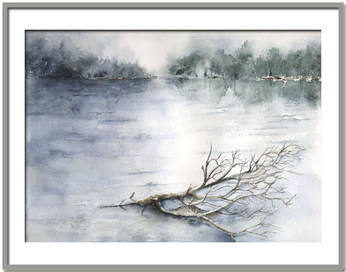 Aquarelles/Watercolours L'étang dans la brume / The pond in the mist