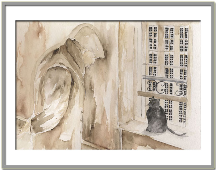 Aquarelles/Watercolours Les personnages / People Le vieil homme et le chat / The old man and the cat