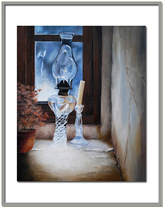 Peinture à l'huile / Oil painting toiles / canvas La lampe à pétrole et la bougie / The kerosene lamp and candle
